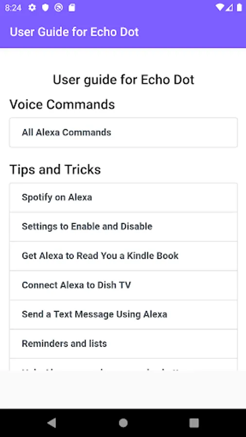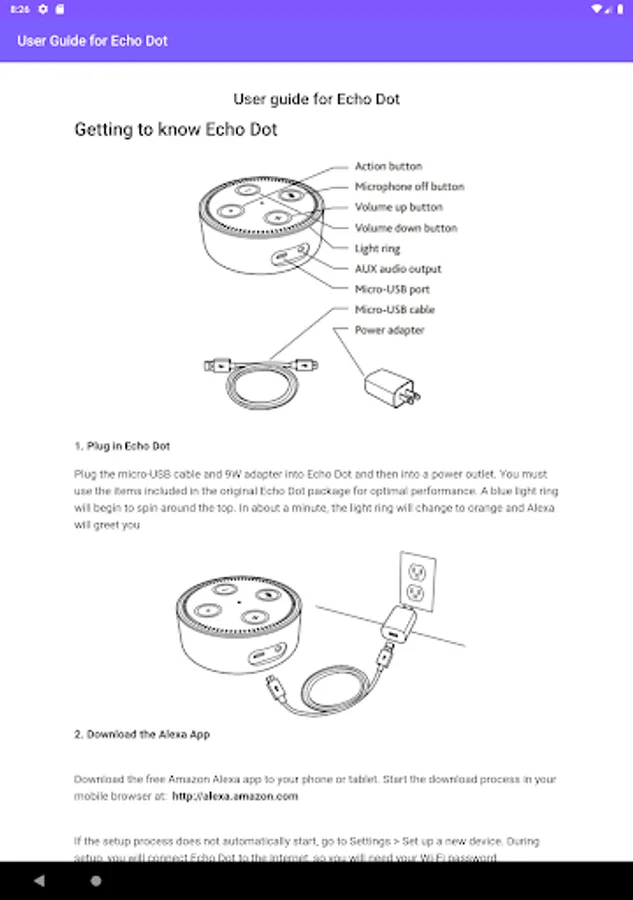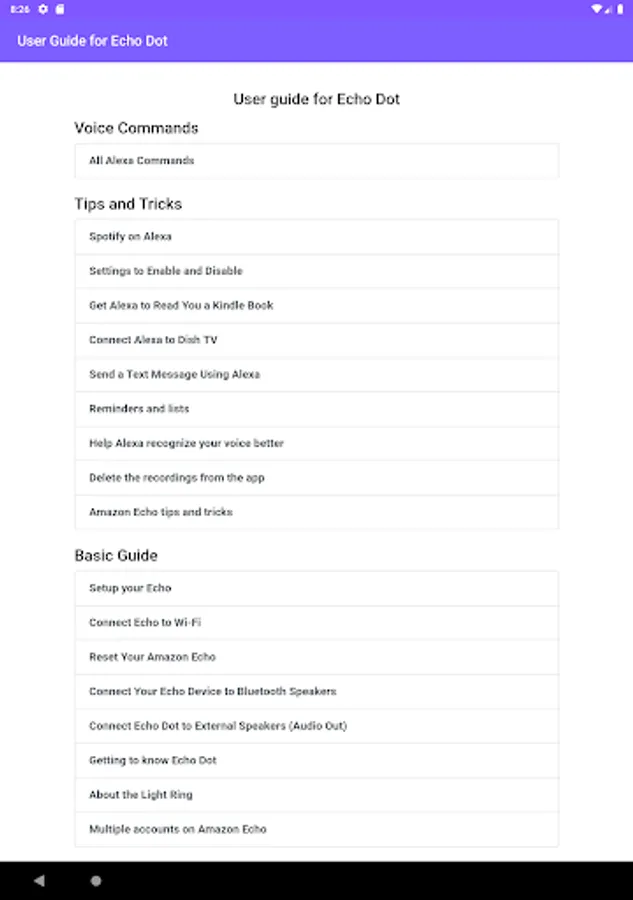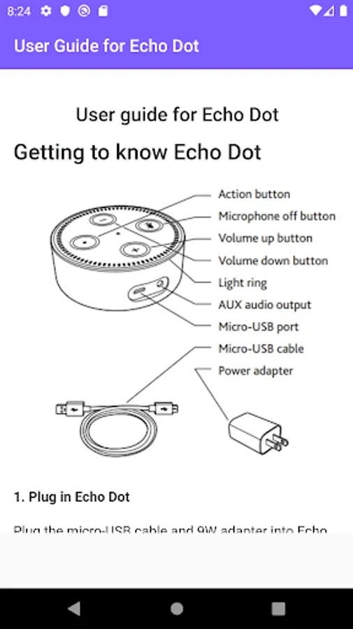 Get everything you need to learn about Echo Dot in one place. This app includes Amazon Echo Dot User guide, tips and tricks, Alexa voice commands everything in one place.