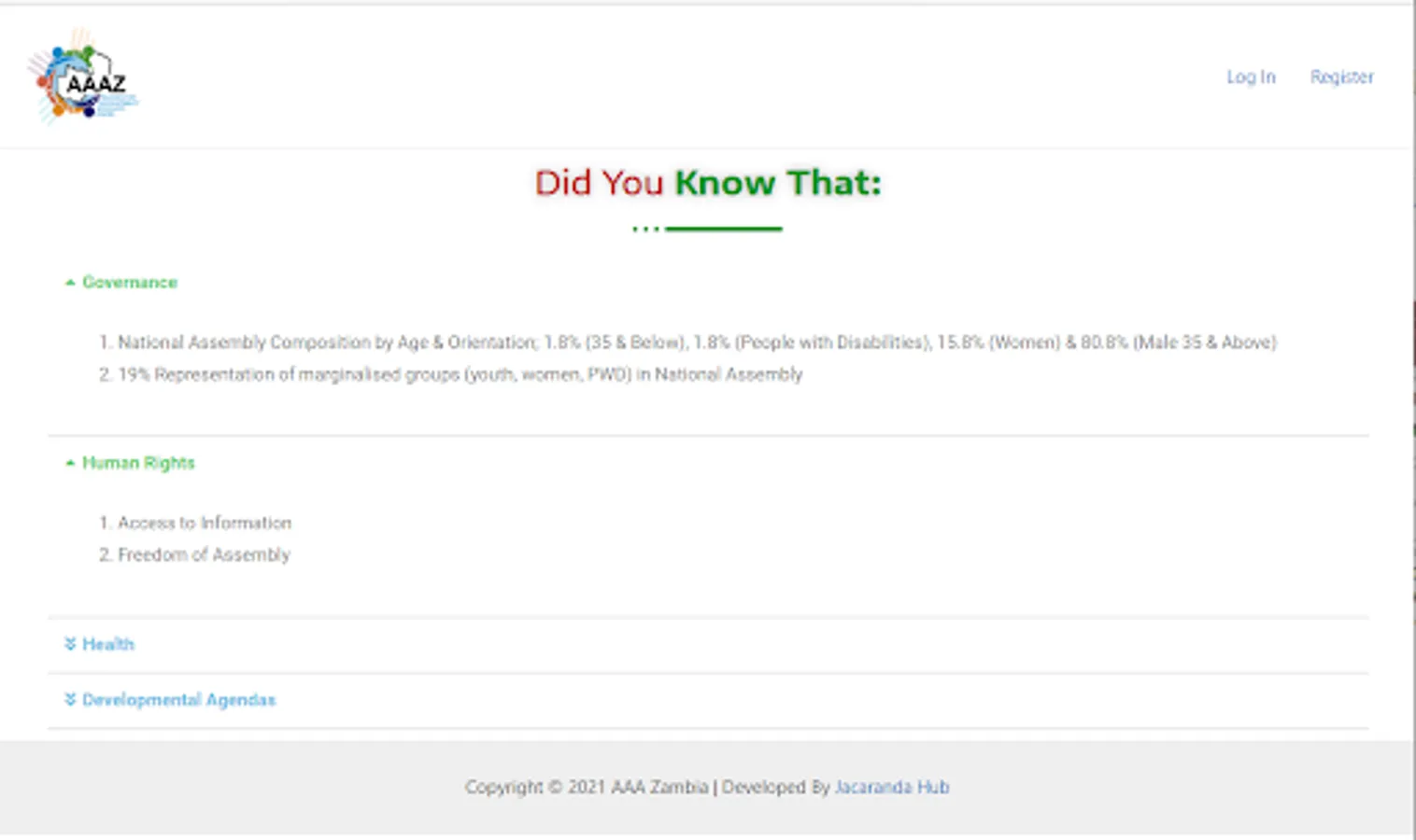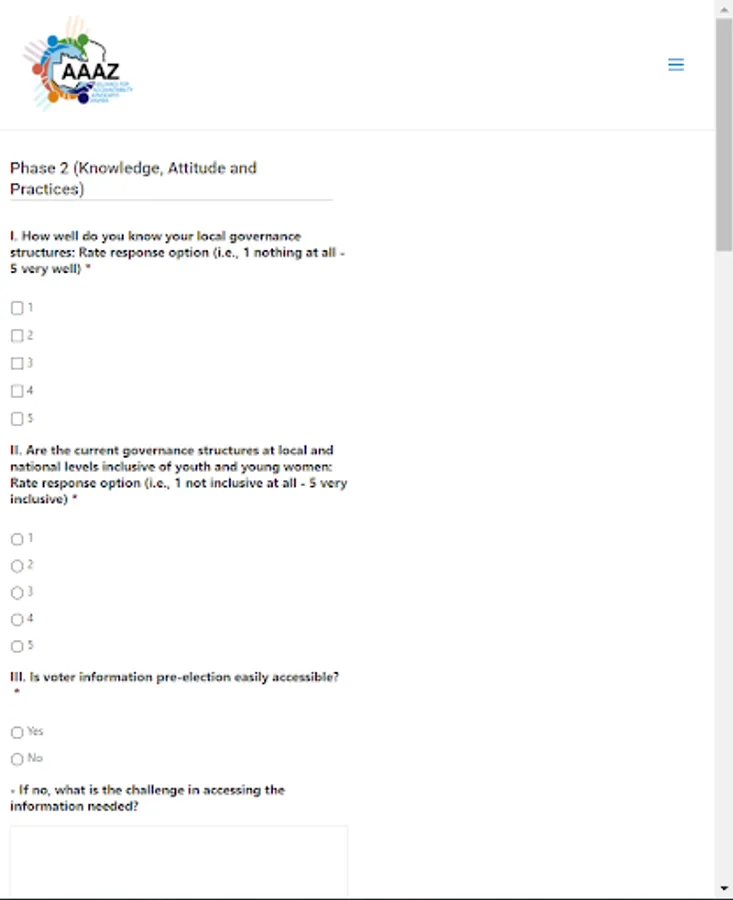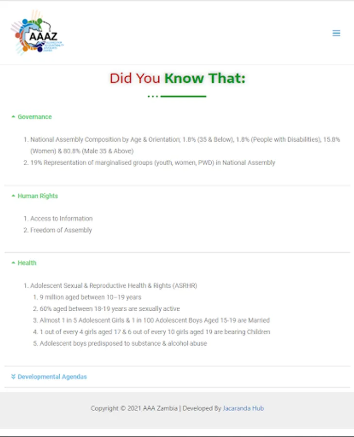 AAAZ is a youth led nationwide membership non-profit-organization that seeks to promote meaningful youth participation in decision making spaces and local governance structures as a method to make youth representation significant in the developmental and democratic processes of Zambia.