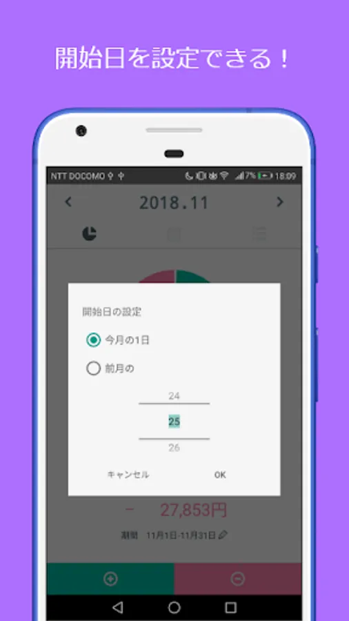 開始日を設定できるので、家計簿がつけやすい!
