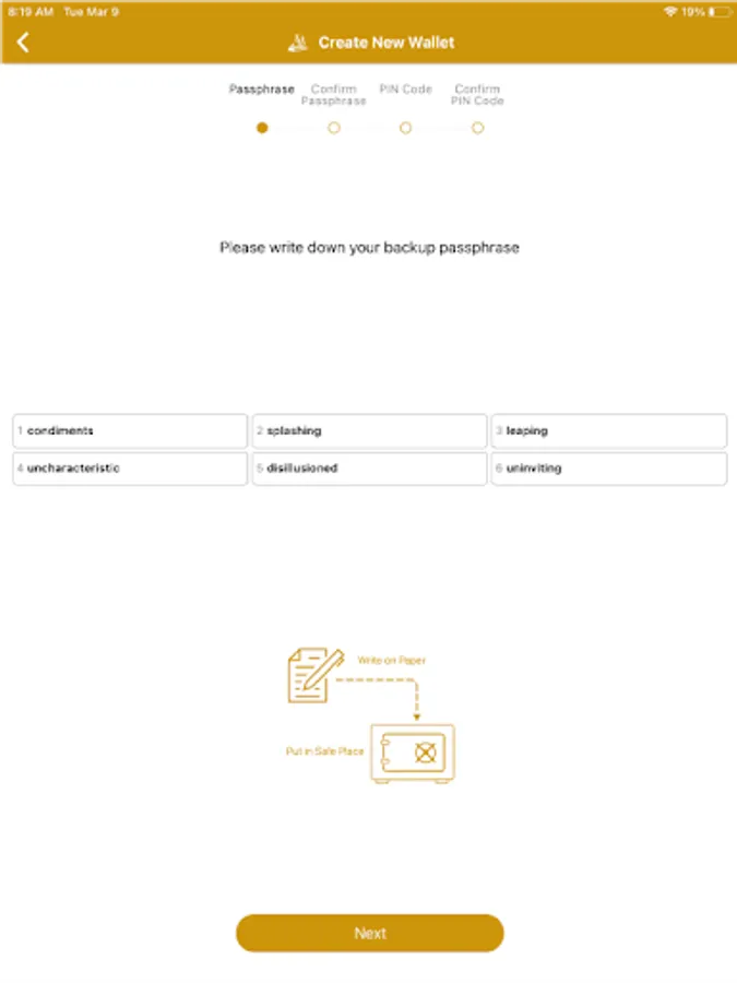AABB Wallet never tracks, holds, or accesses your crypto - you are in complete control of your wallet. If necessary, restore your cryptocurrency wallet on any device with your 6-word passphrase.