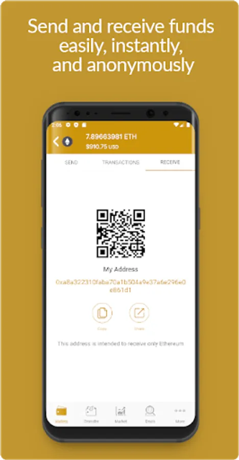 Pick and use the world’s best blockchain wallet. Instant crypto transactions and anonymous internal transactions allow you to store your digital assets securely and send crypto funds instantly. Why wait many minutes when you can receive a Bitcoin transaction in seconds?