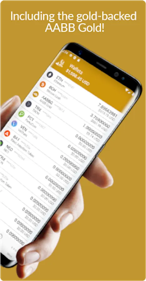 Easily store all your crypto coins in one efficient blockchain wallet. AABB Wallet acts as a Bitcoin wallet, Ethereum wallet, Ethereum Classic wallet, Litecoin wallet, Dash wallet, Tether (USDT) wallet, and a wallet for the gold-backed AABB Gold (AABBG)!