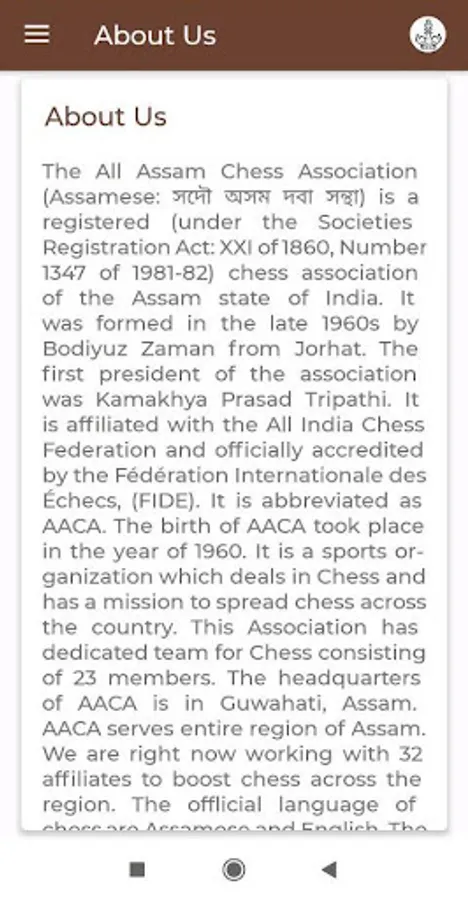 The All Assam Chess Association is a registered chess association of the Assam state of India. It was formed in the late 1960s by Bodiyuz Zaman from Jorhat. It is affiliated with the All India Chess Federation and officially accredited by the Fédération Internationale des Échecs, (FIDE). It is a sports organization that deals in Chess and has a mission to spread chess across the country.