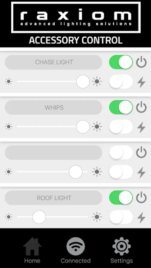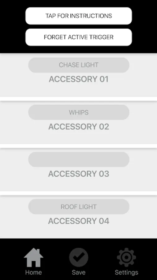 5. Tap the 'Settings' icon to customize the names of your Raxiom WAC connected accessories. Tap 'Save' to save the customized names.