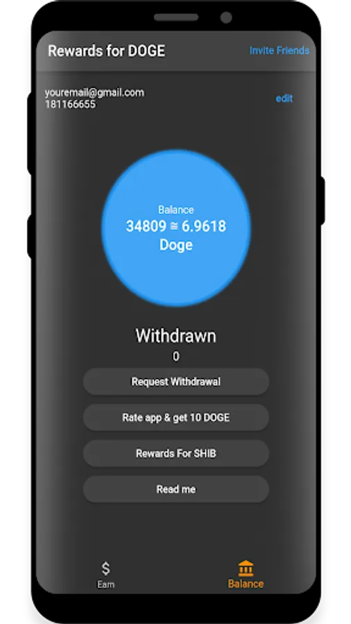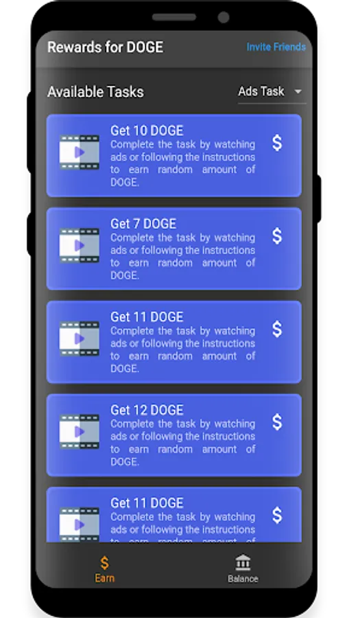 This is a free rewarding app, you have to complete the tasks or watch ads daily to increase your points and redeem them with DOGE.