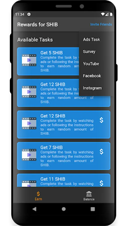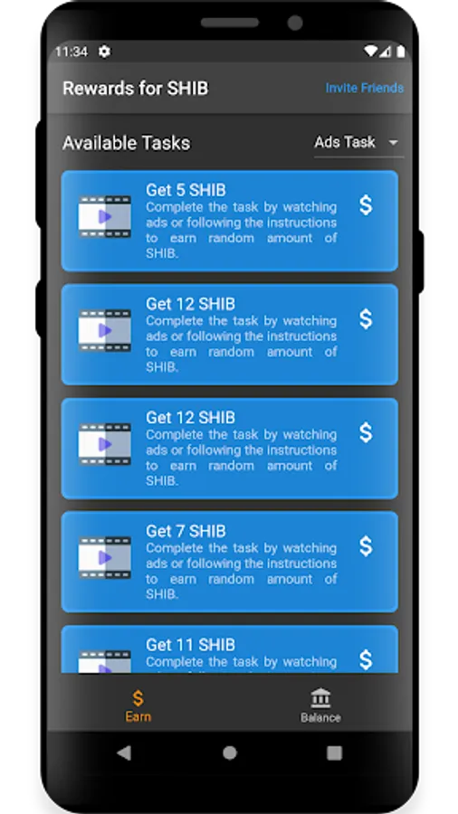 This is a free rewarding app, you have to complete the tasks or watch ads daily to increase your points and redeem with SHIB.