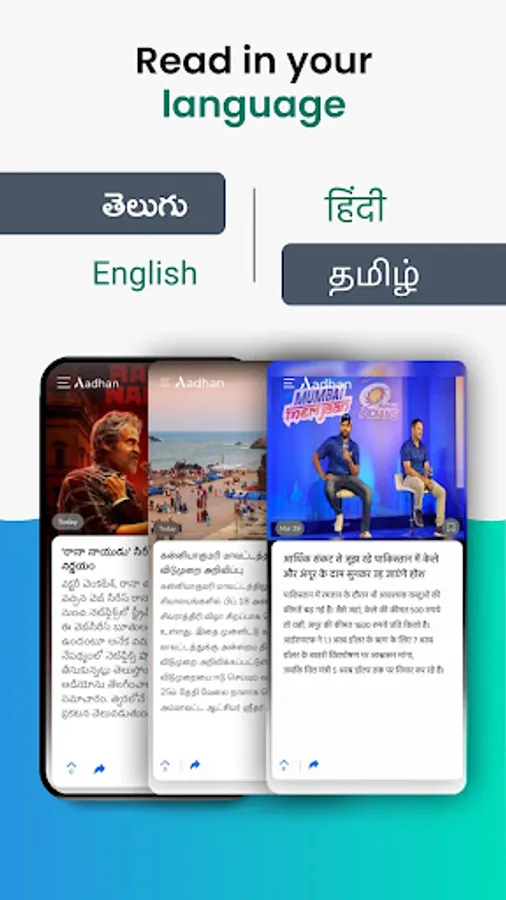 Aadhan brings you the latest and trending news from your locality and around the world, presented in regional languages. Save time and stay updated with Aadhan – read news in just 9 seconds!
