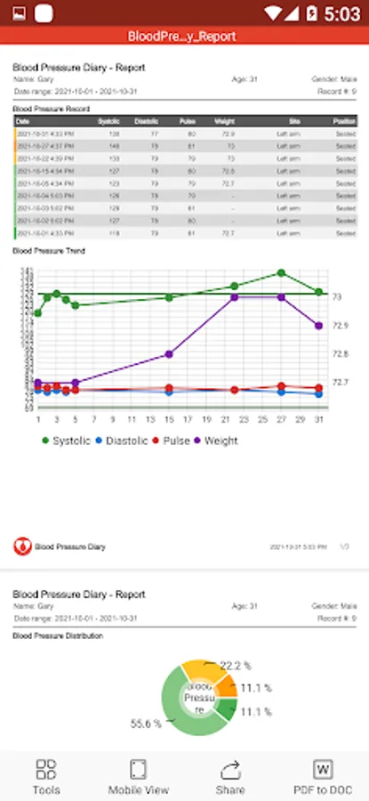 Blood Pressure Diary helps you easily log your blood pressure and share blood pressure report with your family and doctor.