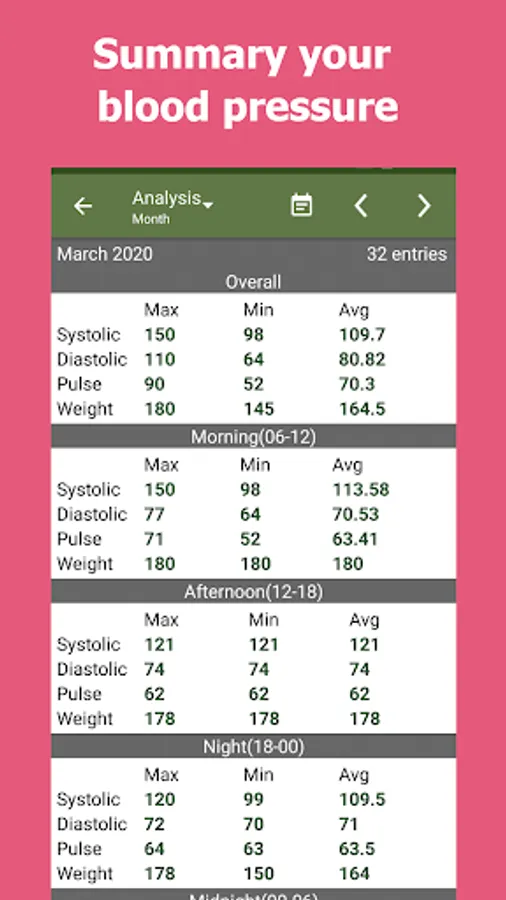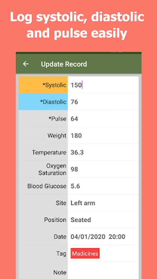 Blood Pressure Tracker helps you to log your blood pressure, monitor blood pressure trends and shared with your doctors.
