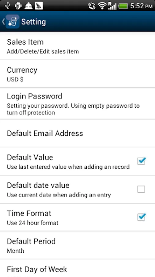 12. Configurable first day of week