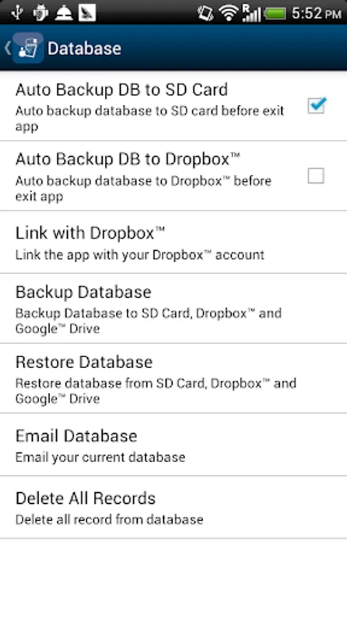 9. Auto backup database to SD card when exiting the app