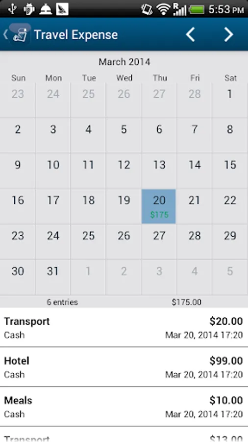 Travel Expense helps you to record your expense during traveling, i.e. on a business trip, an out of the office appointment or a person vacation.
