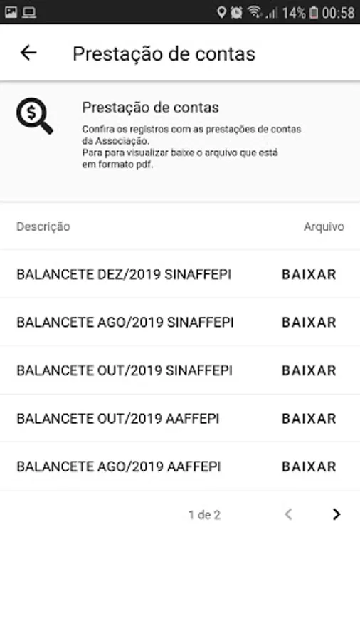 The accountability of AAFFEPI and SINAFFEPI can also be accessed through the new application. Oh, and you can download these documents. This is a way of ensuring the total transparency of the expenses incurred by the management of the entities.