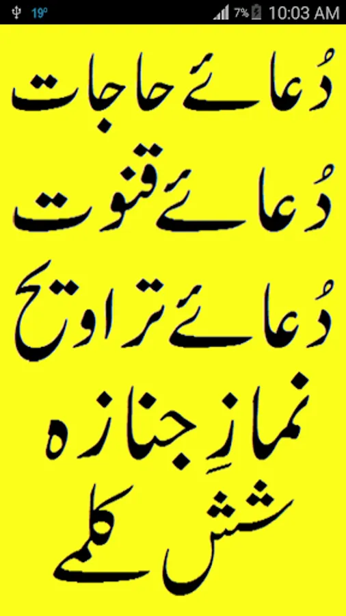 This app contains the most continuously recited and prayed Duaas and Kalmaat. The app contains following Duaayen along with Urdu translation: