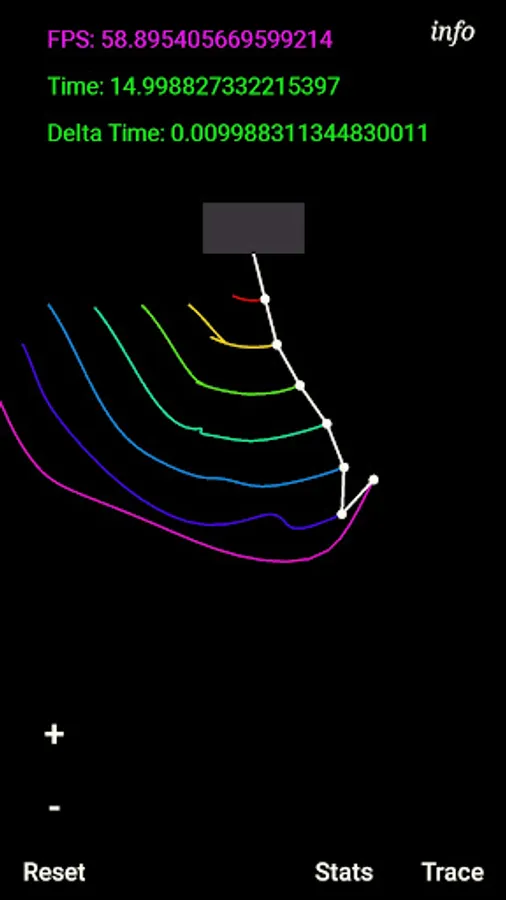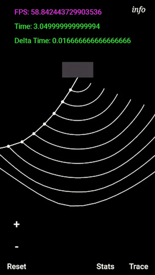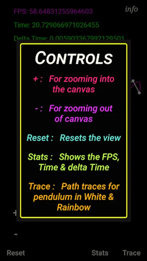 • Stats to display current FPS along with the simulation time and current time step used by the Adaptive Runga Kyta method.