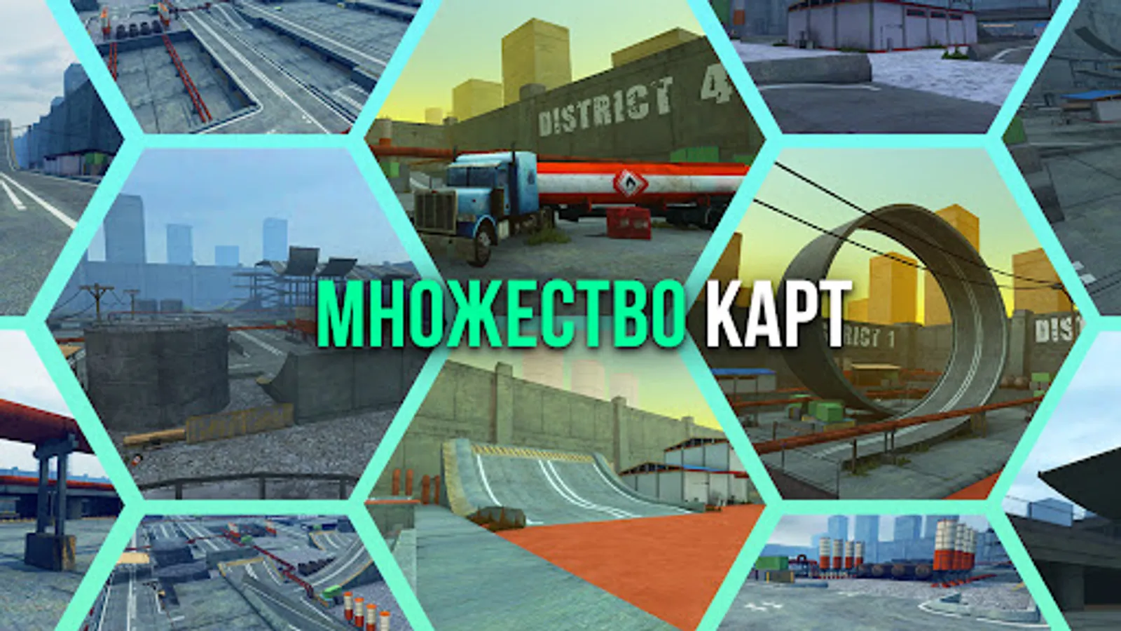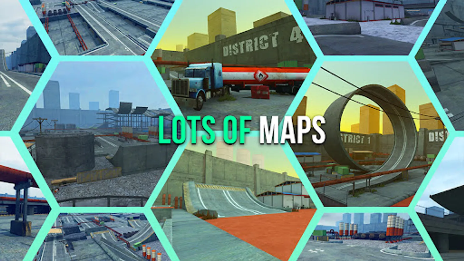 Play online with friends and compete with players from all over the world for the title of the most destructive racer. Or hone your piloting skills in a free offline game.
