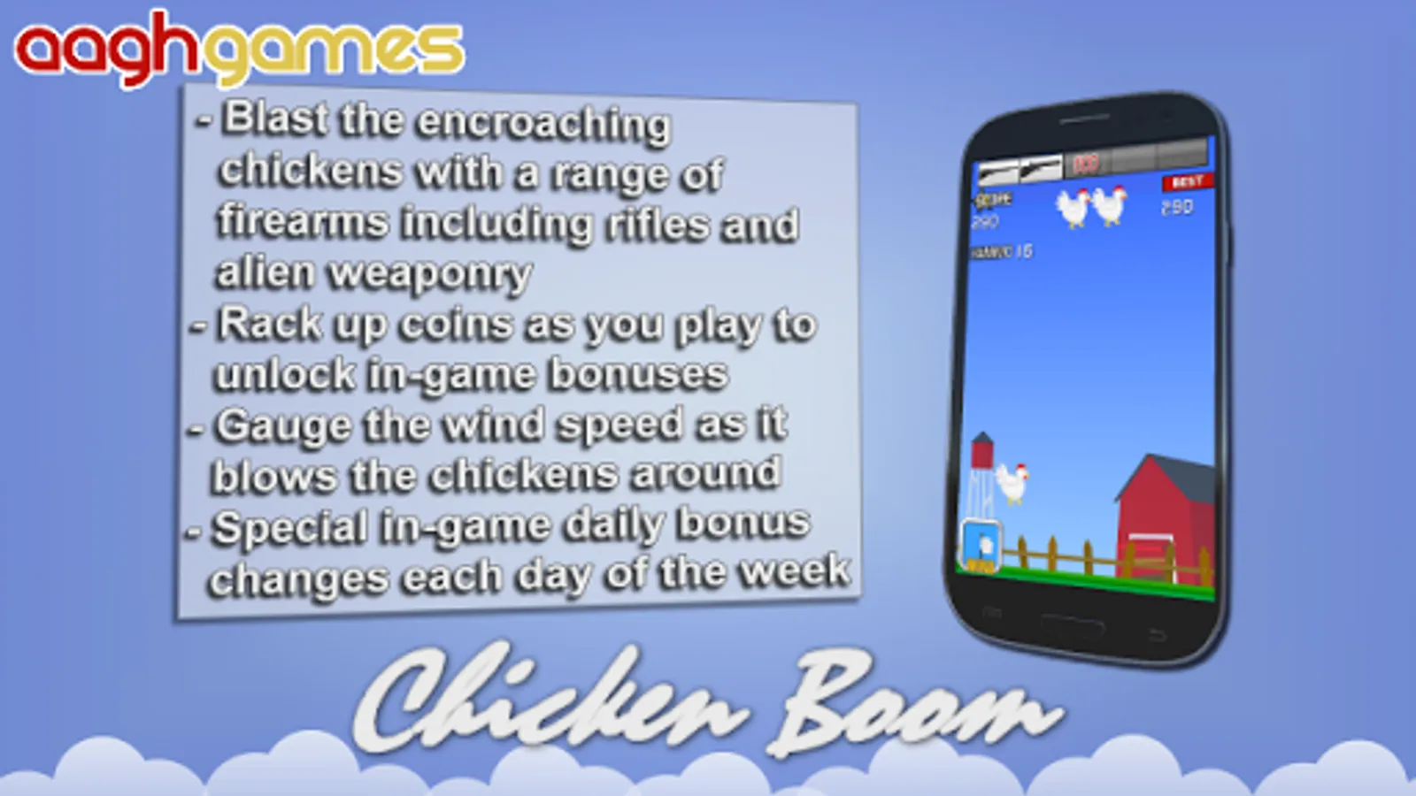 Chicken Boom is a bang - at least for the chickens. It's raining hens and it is up to you to take up an arsenal of various weapons like rifles and shotguns to lower the poultry population down a few notches. You never did trust chickens, did you?