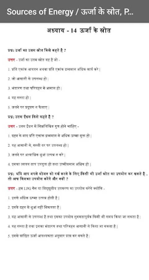 ★ पाठ 14: Sources of Energy / ऊर्जा के स्रोत