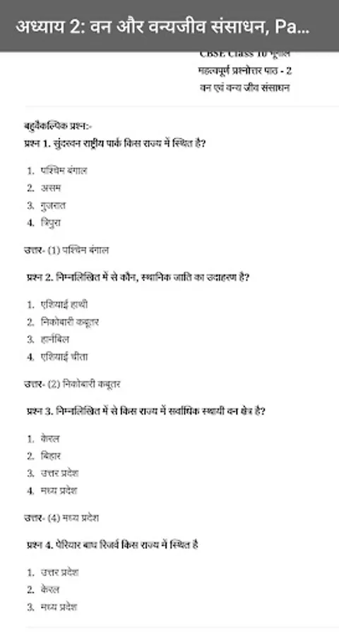 ★ पाठ 2: वन और वन्यजीव संसाधन