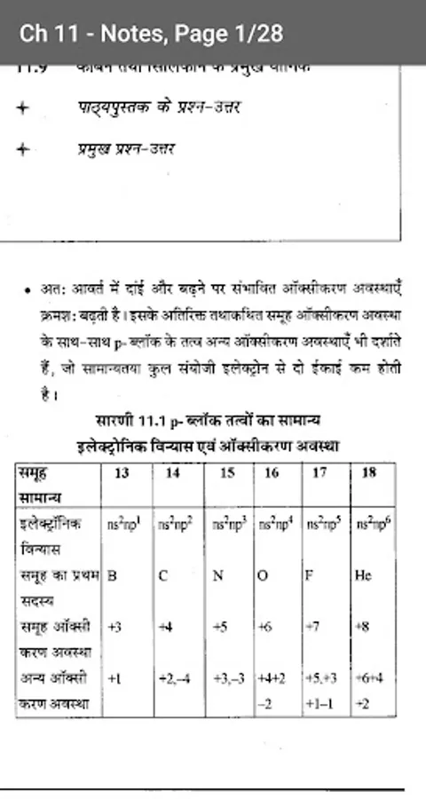 ★ पाठ 11: p-ब्लॉक के तत्व