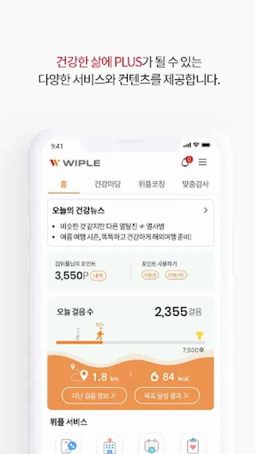 'Whipple' is a health promotion reward program that allows people of all ages and genders to accumulate points while engaging in health activities easily and conveniently. It includes a motivating function for various middle users to communicate with and encourage customers to improve their health.