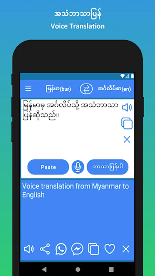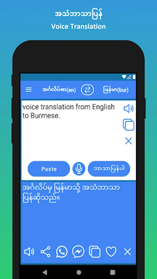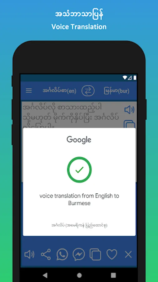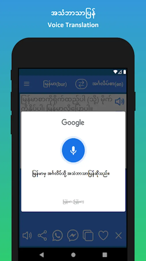 ✓ 4. Voice typing in Burmese. Voice Translation from Burmese to English.