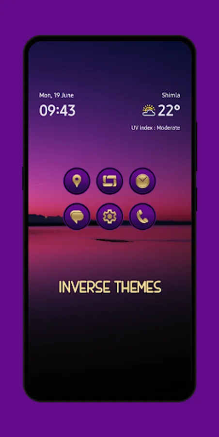 Customize your device with these framed, circular icons with golden and violet colors. You can choose and edit various icons according to your preference. These unique, rounded, golden and violet icons will shine on your device's screen.