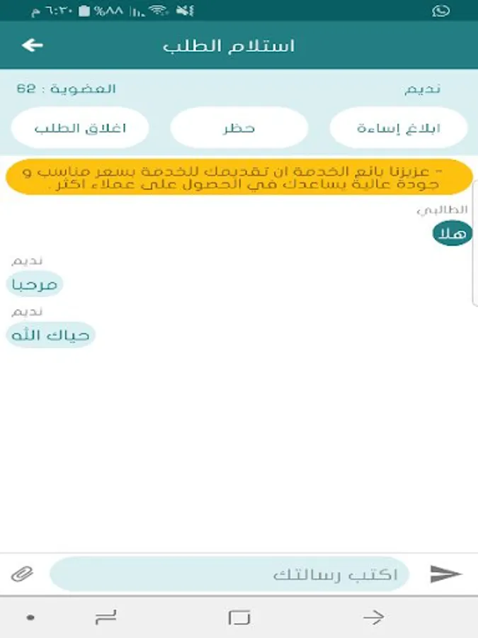 2- طالب خدمه فقط : وهذه العضوية تتيح لك القيام بطلب الخدمات من بائعي الخدمة الموجودين في التطبيق.