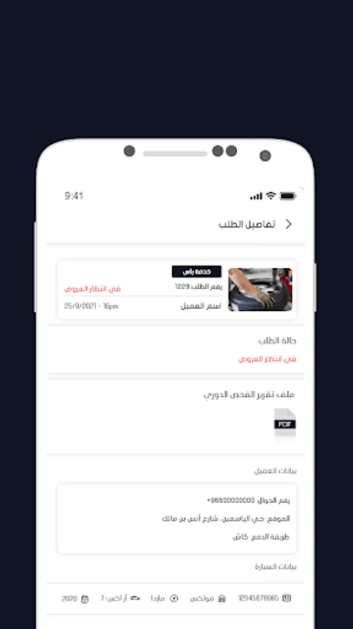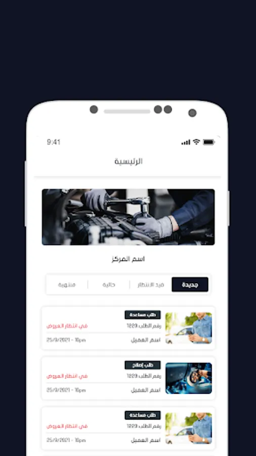 The service provider system displays the services of centers and maintenance workshops in a distinctive way to customers, where the customer chooses the service he wants from the center or workshop in a very easy and smooth way, and the application also displays all the information that the service provider needs, such as the number of requests or their status for other additional things.