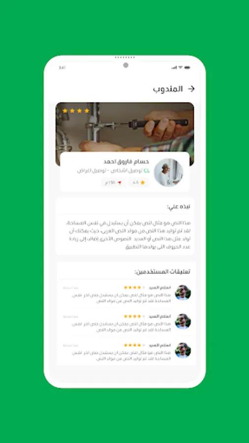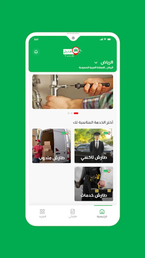 Tarish application is an intermediary application through which you can receive services and provide services, and the user registers in the application and chooses the type of account, whether he is a user of services or a service provider, through the application you can follow up the service provider when he comes to you and communicate with him via chat