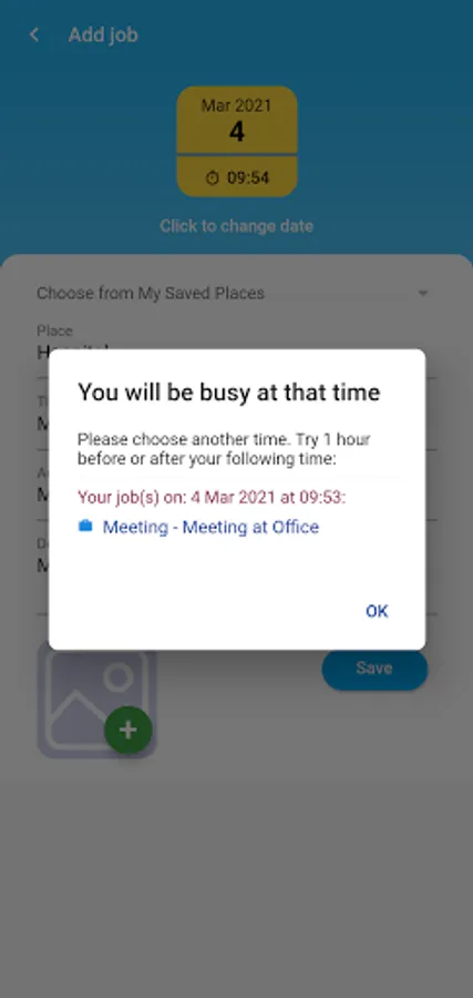 Jobsku will notify you if you create a schedule at a time that already booked for another job.