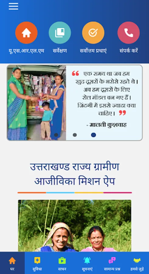 The app provides relevant information to SHG members on government schemes and programmes facilitating to employment generation activities and Enterprise development. The app serves as an online repository for all the government schemes and programmes, short surveys/polls and broadcast notifications.