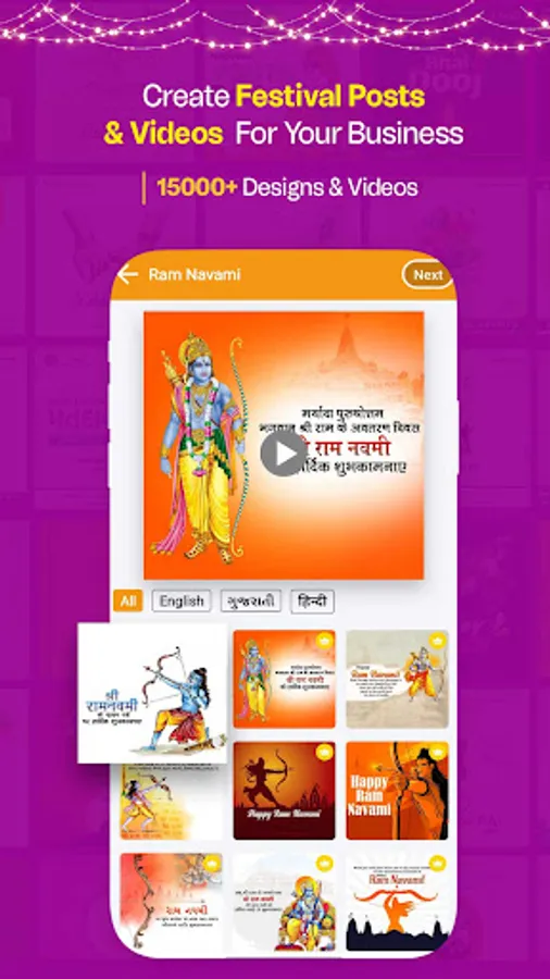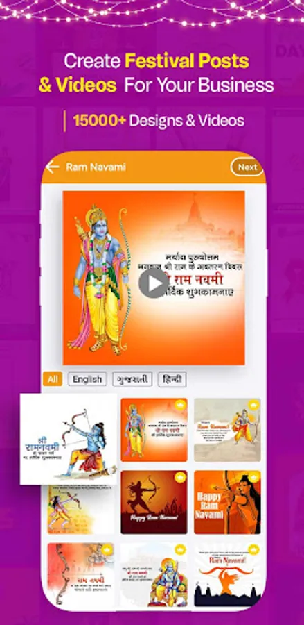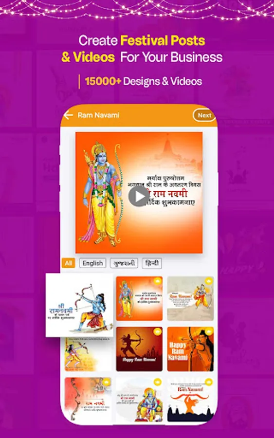 ✅ Multiple Language: Our festival poster maker app in Hindi, English, and Gujarati languages.