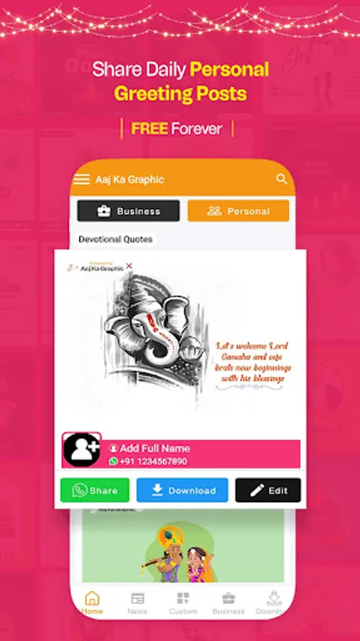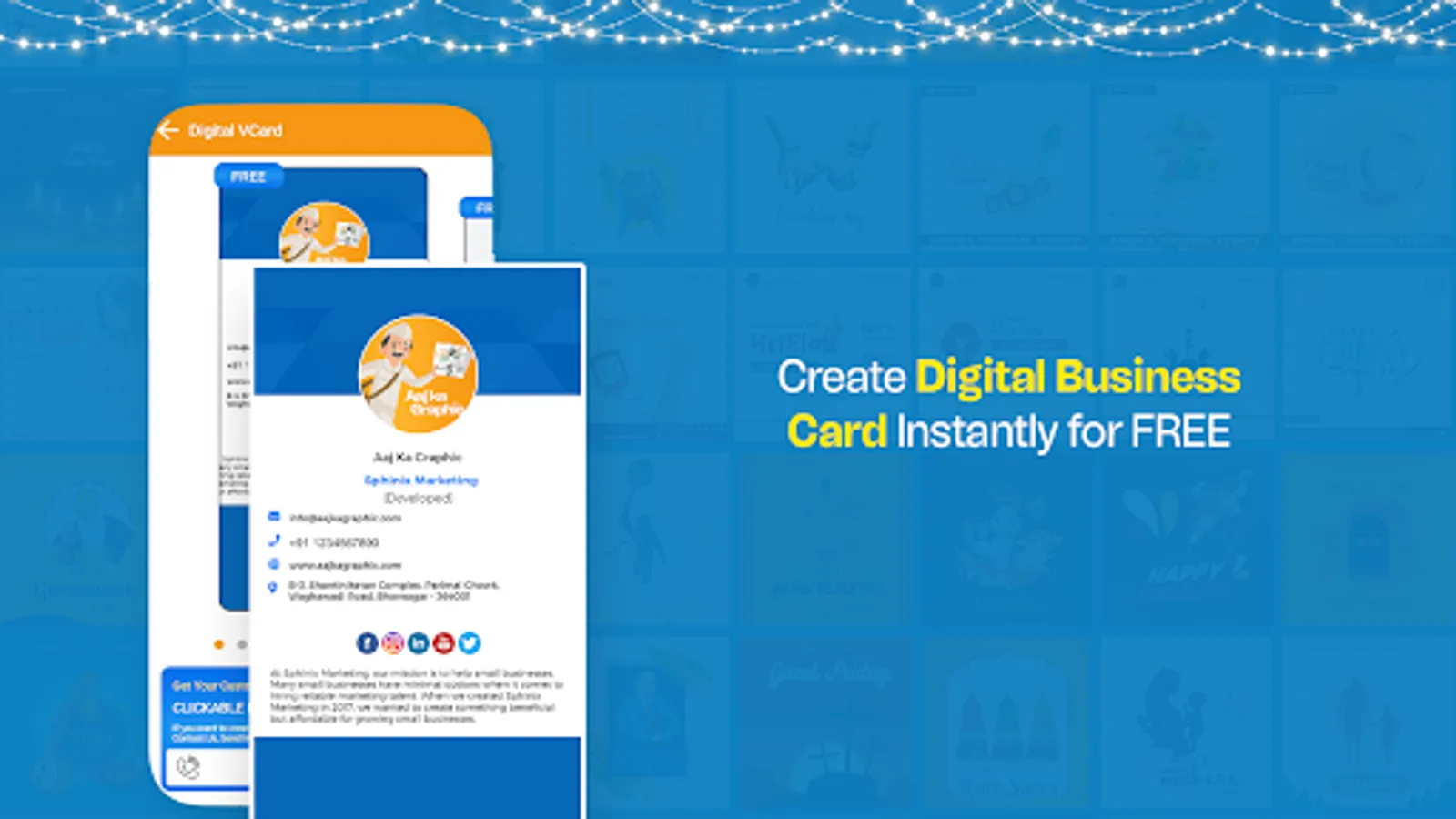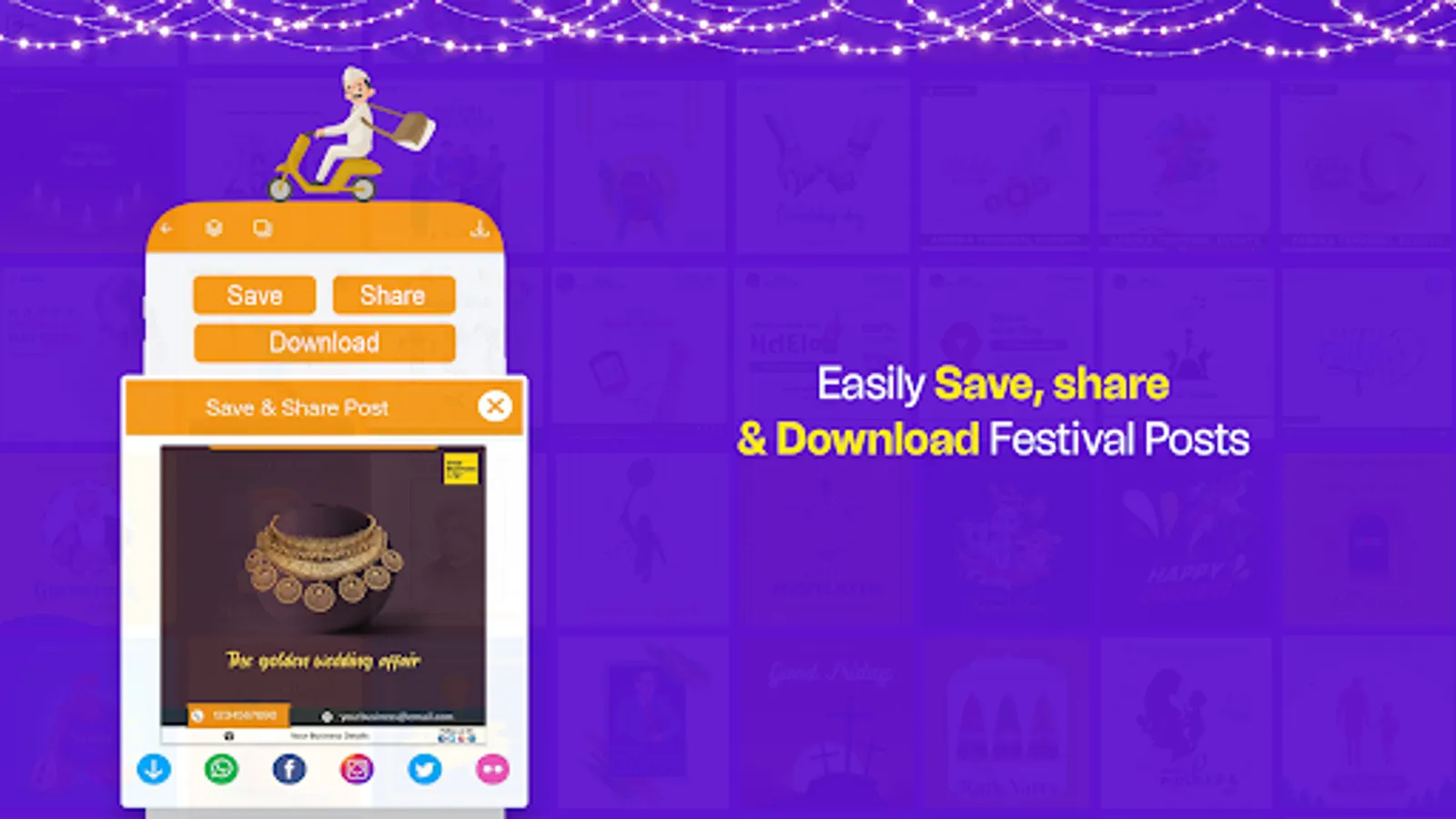 ✅ Social Share: Our user-friendly interface allows you to easily share your festival poster on popular social media apps such as WhatsApp, Facebook, Instagram, Twitter, Pinterest, Snapchat, YouTube, and even Insta Reels maker app.