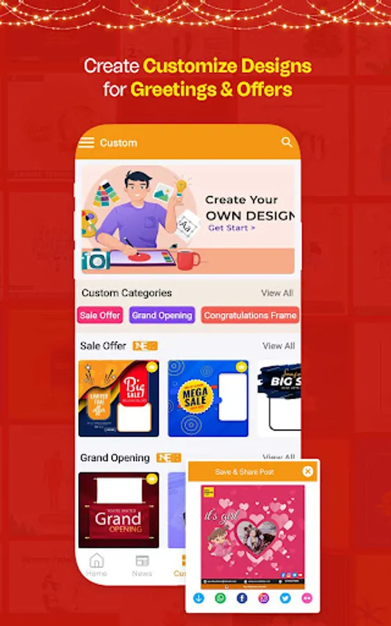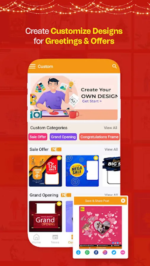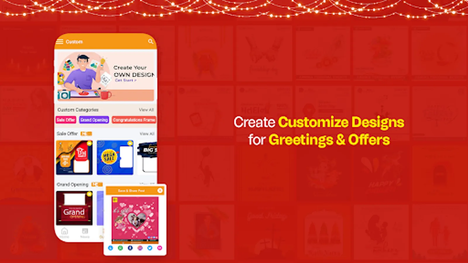 ✅ Greetings: Send warm greetings to your loved ones for any occasion with custom design maker app! We offer a variety of card designs for every occasion, including birthdays post maker, festivals posts maker, product launches, anniversaries, congratulations, and even condolence messages.