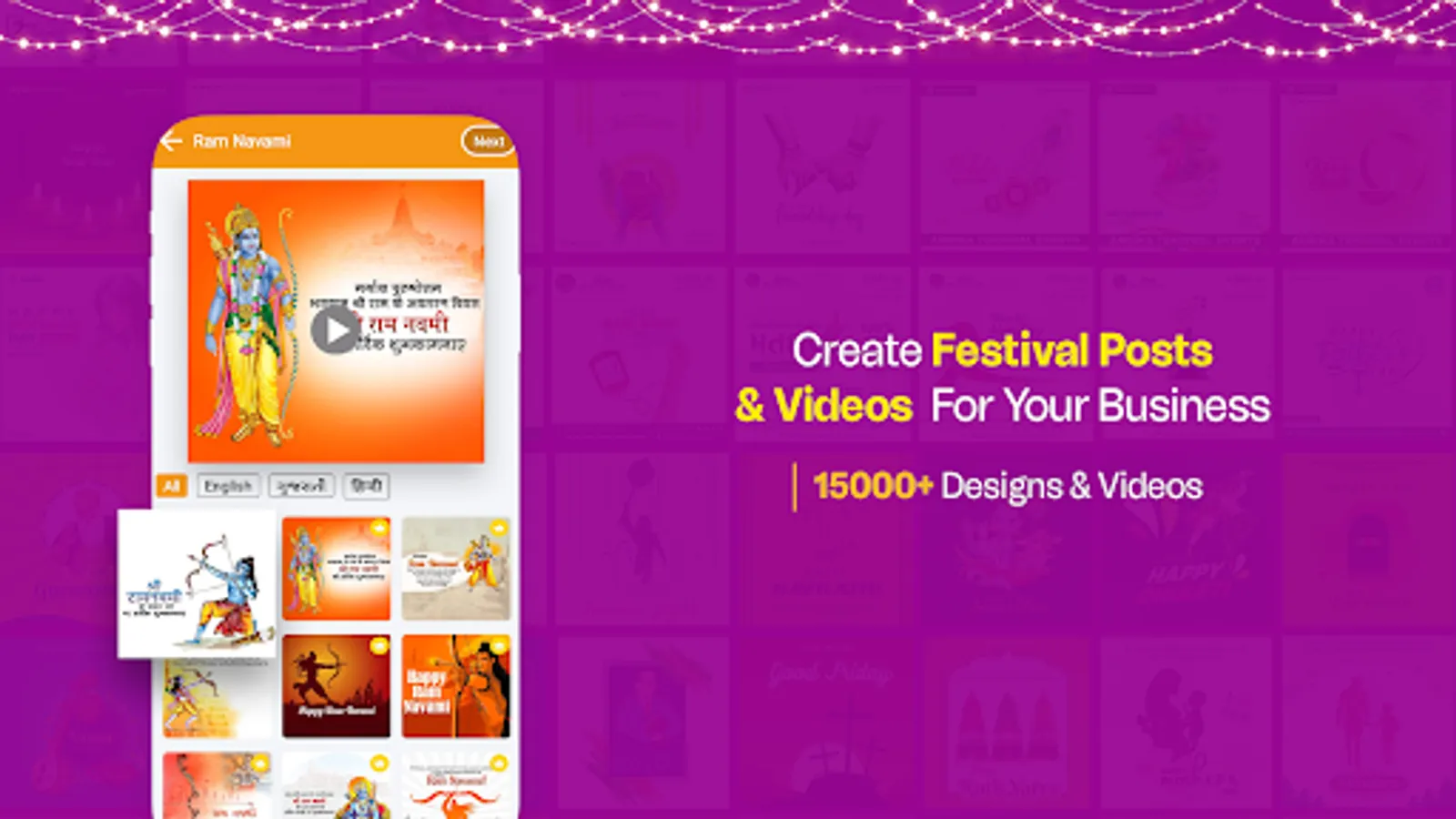 Our festival posters also include text in various Indian regional languages, making it easier for you to connect with your target audience and promote your business.