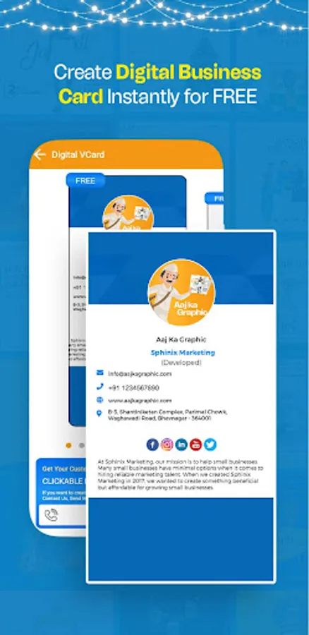 Digital business card maker app features a user-friendly interface that makes it easy for you to create a visually appealing and impactful digital business card. You can easily add your logo, contact information, and even a brief description of your services.