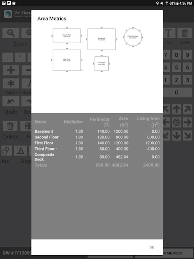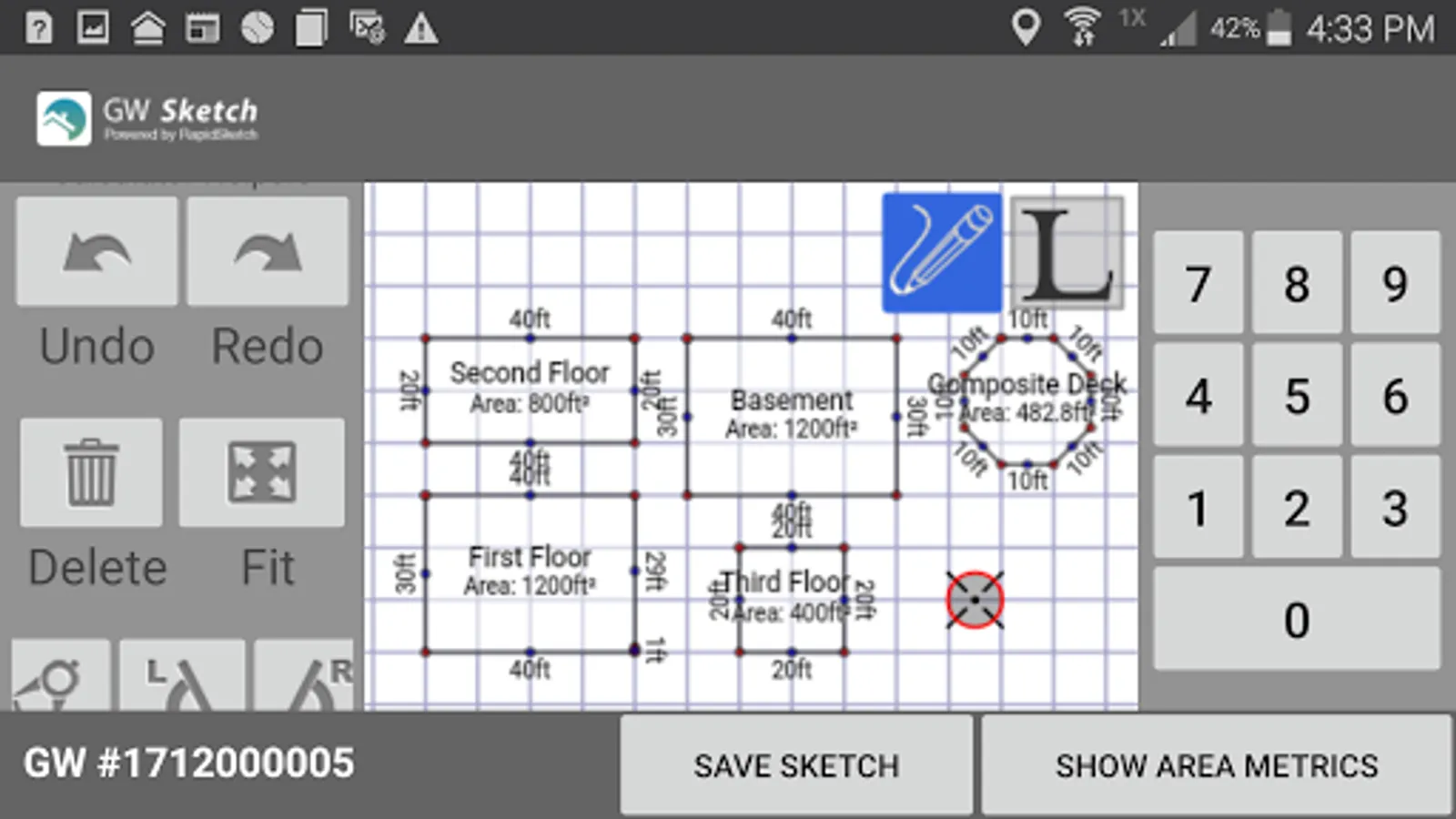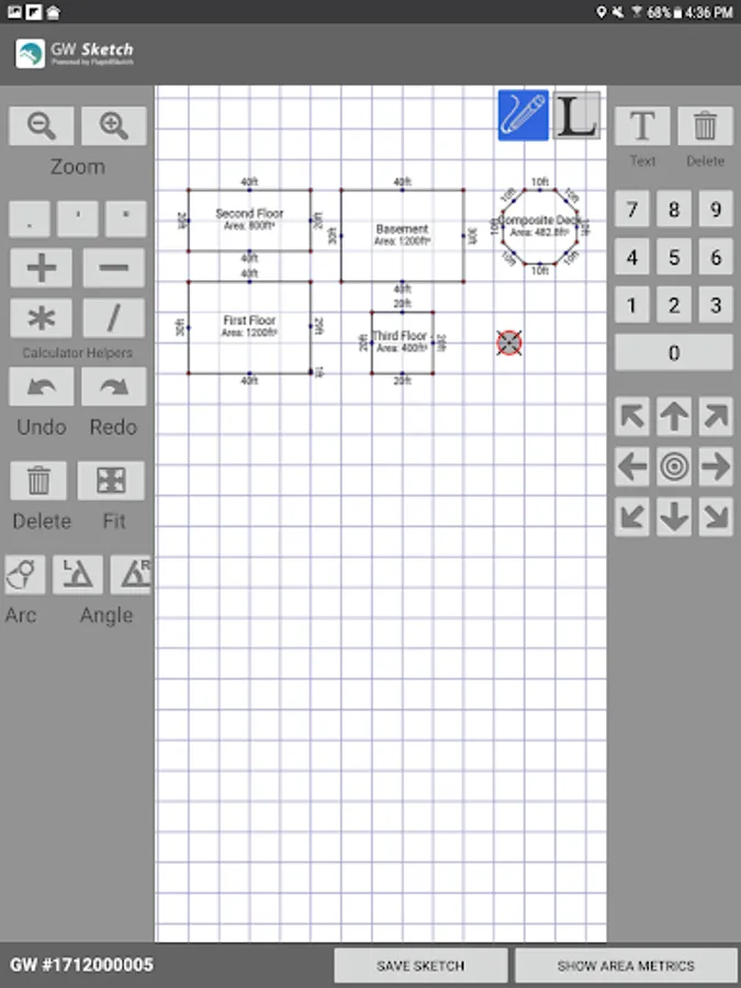 * GW Sketch will calculate Living Space & automatically log it to your GroundWorks™ Order