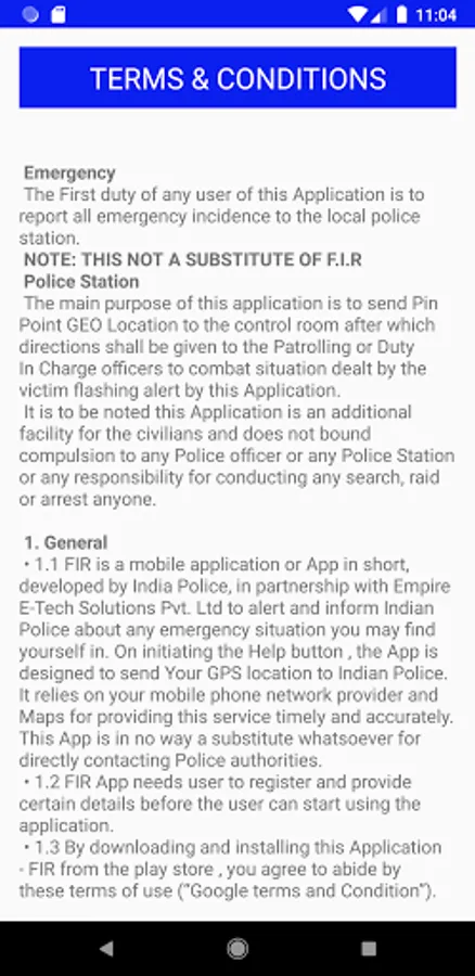 In case of any emergency you can use FIR app. FIR app will send user's Geo-location (using GPS of mobile device) to the Control Room of Police on a single click of help button.