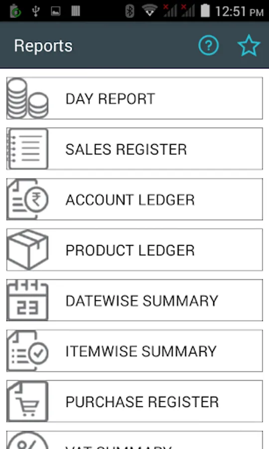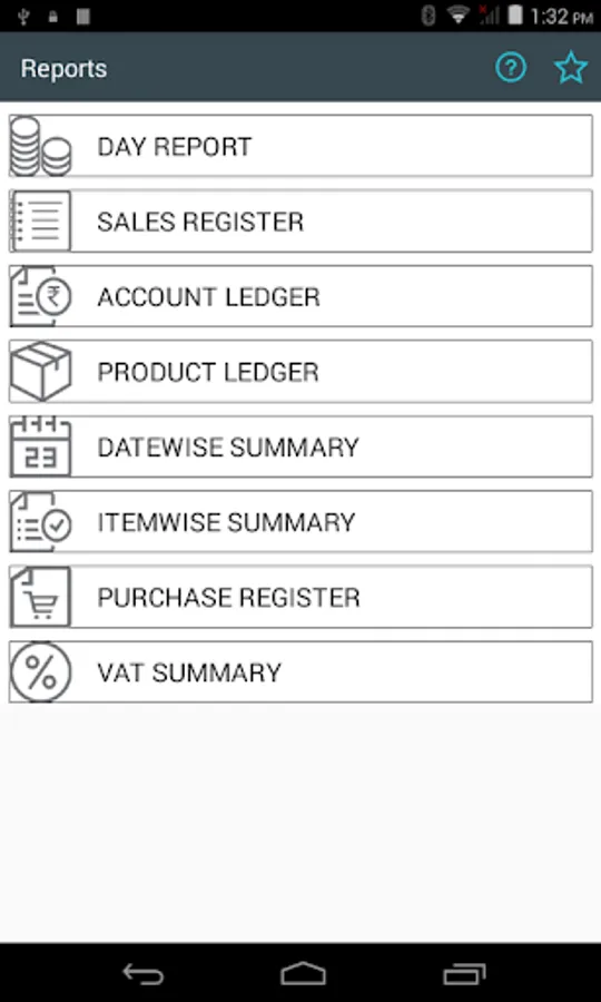 It provides all the features necessary to maintain shop like Inventory, Billing, Receivable, Payable and accounts ledger with Print/SMS/PDF for Mail and Image for sending invoice using messenger apps like WhatsApp etc. Bills / Invoices can be printed using Bluetooth / Wi-Fi printer. It has entry options for Sales, Purchase, Receipt and Payment and provides reports like Day Report, Sales Register, Account Ledger, Receivable, Payable, Date/Item wise summary, Item/Date wise Summary, Purchase Register, and VAT Summary. Using Multiple Tax and flexible discount options, retail billing and inventory for any type of business can be accommodated.