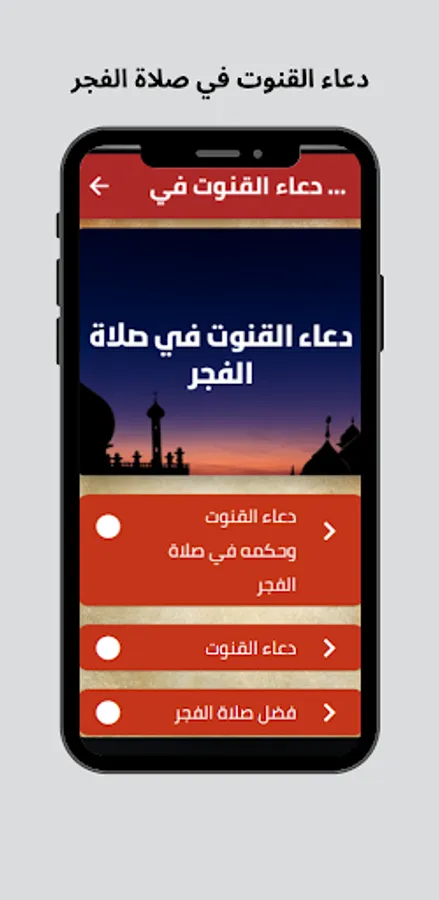Our application talks about the supplication of qunoot in the dawn prayer according to the Shafi’is, the Malikis and the Hanafi school.