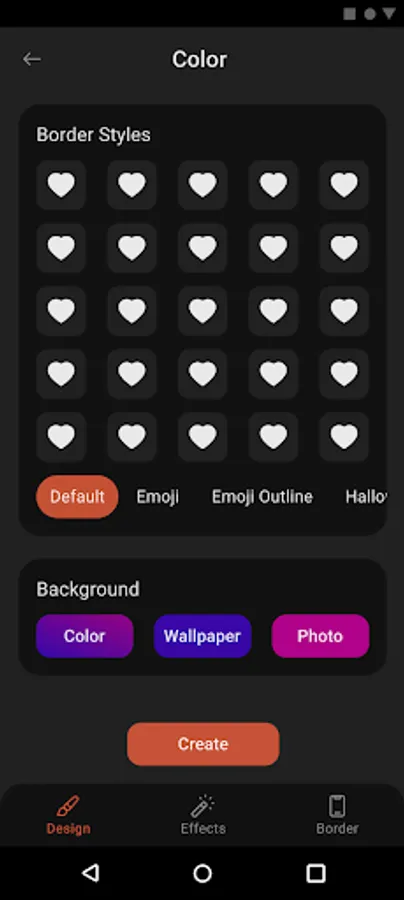 choose the appearance of the frame itself: there are options with various patterns, symbols, emoji and special effects;
