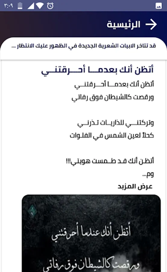 Thousands of free verses of Arabic poetry to share with friends and family via social media such as WhatsApp, Facebook, Twitter, Instagram, Signal, Telegram, etc., using an application from Raheeq Poetry.