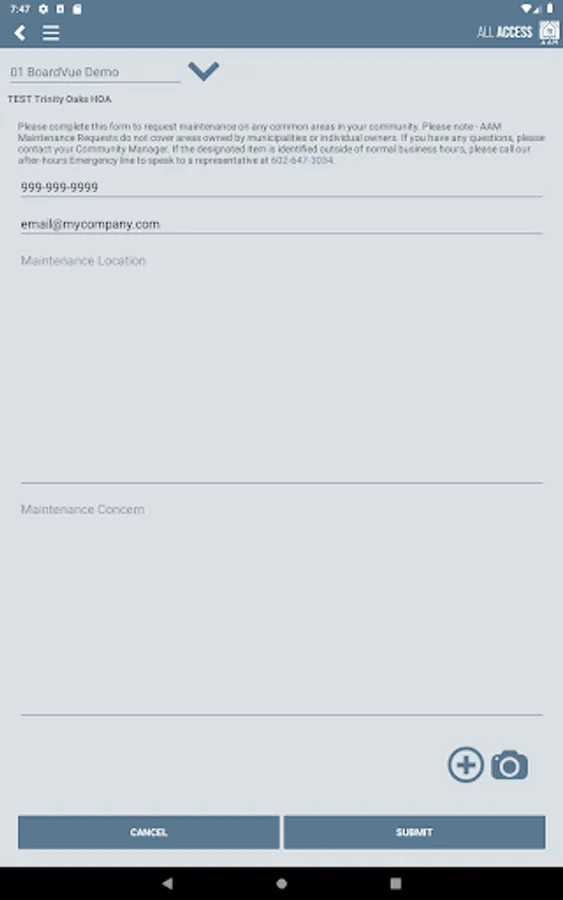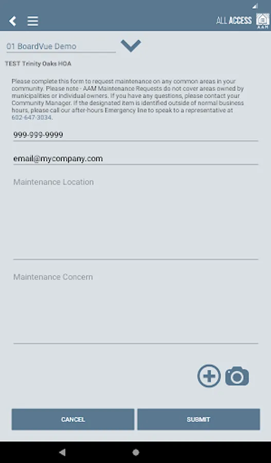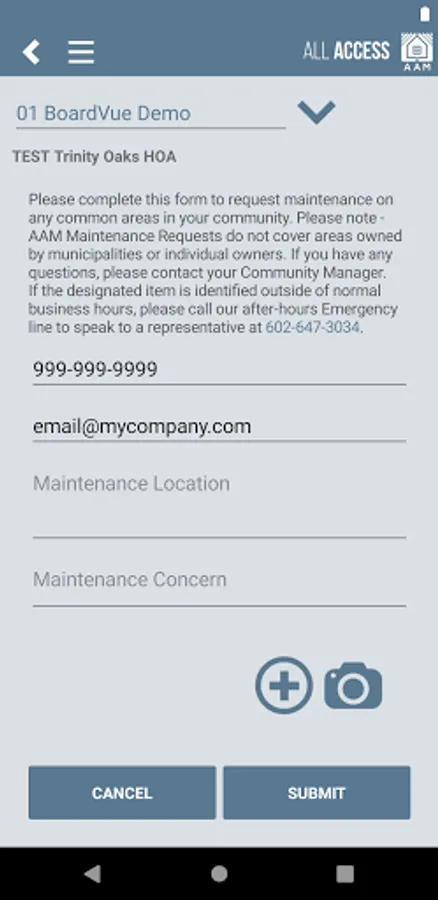 • Submitting Common Area maintenance requests with photos