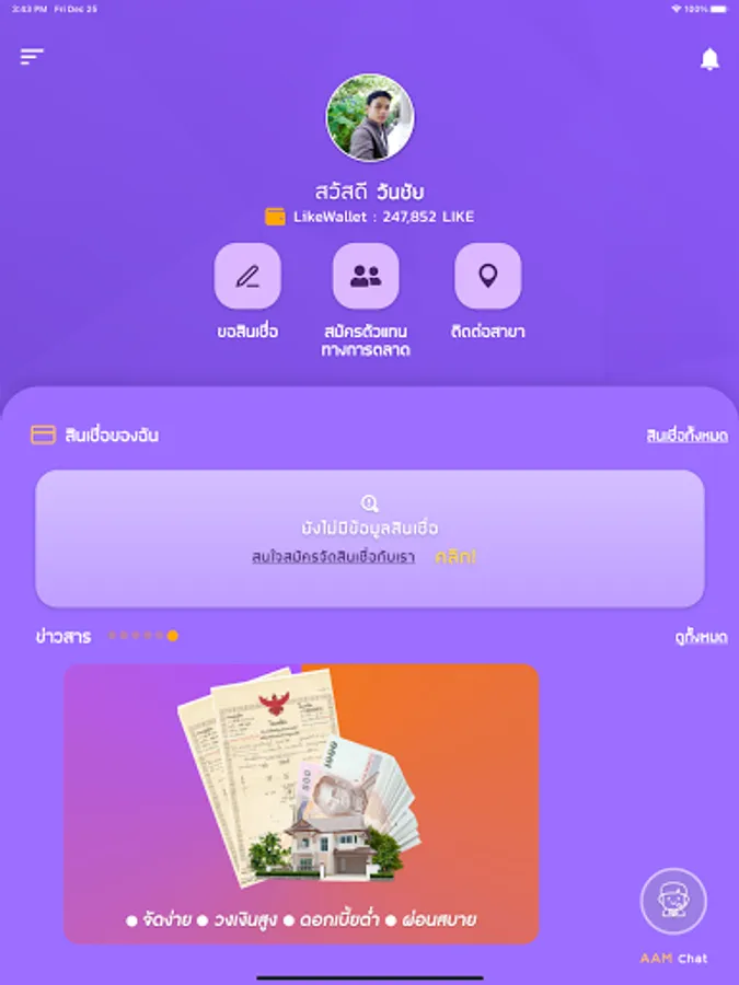 AAM is happy to consider giving loans or credits unconditionally based on how long you have been in business or have been in business. So that you do not lose business opportunities because of lack of working capital, for example, you may bring purchase orders. or invoice Apply for a loan with us