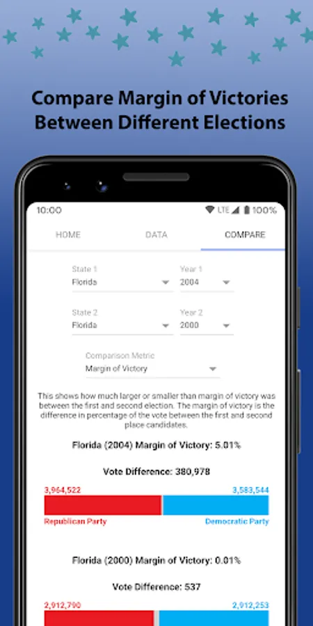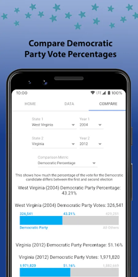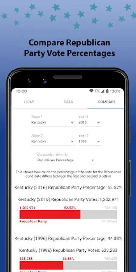 * Analayze how much the percentage of the vote for the Democratic Party or the Republican Party changed or differed between elections