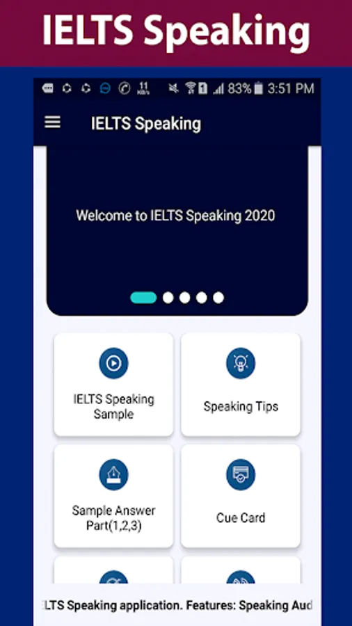 IELTS Speaking app make it easy to improve IELTS Band score for its users . Because this application has many sample Speaking test for IELTS, from where users can practice and listen to real examination.
