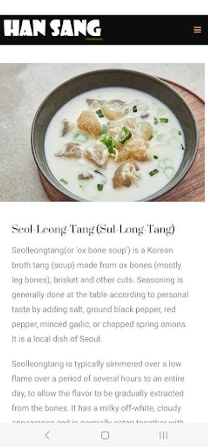 Dedicated brand app for 'Han Sang' to see the menus and order online.