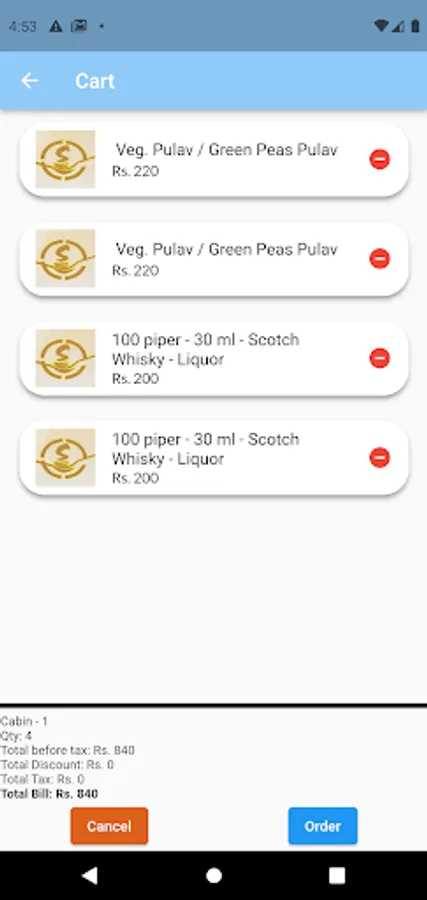 Take kitchen orders, send it to cook for cooking, view, cancel or print orders over Bluetooth printer