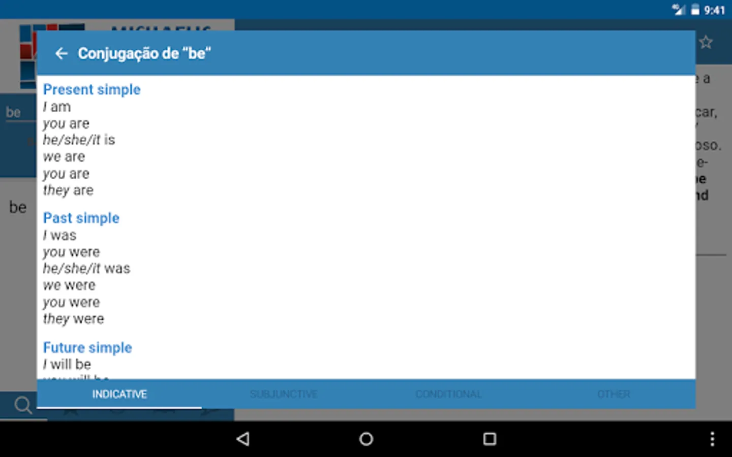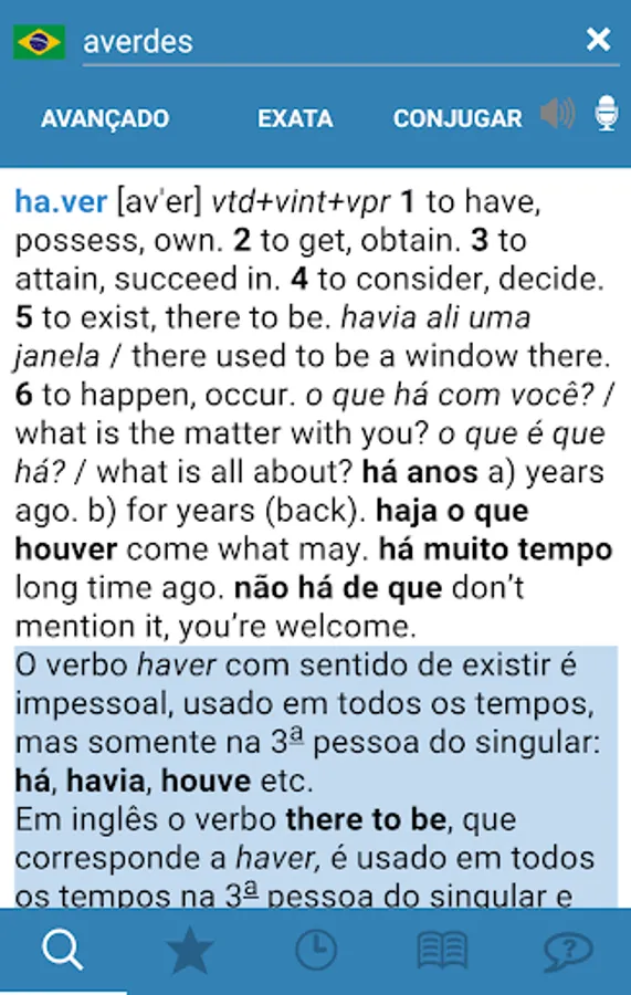 • complete conjugation of all verbs in Portuguese and English dictionary;